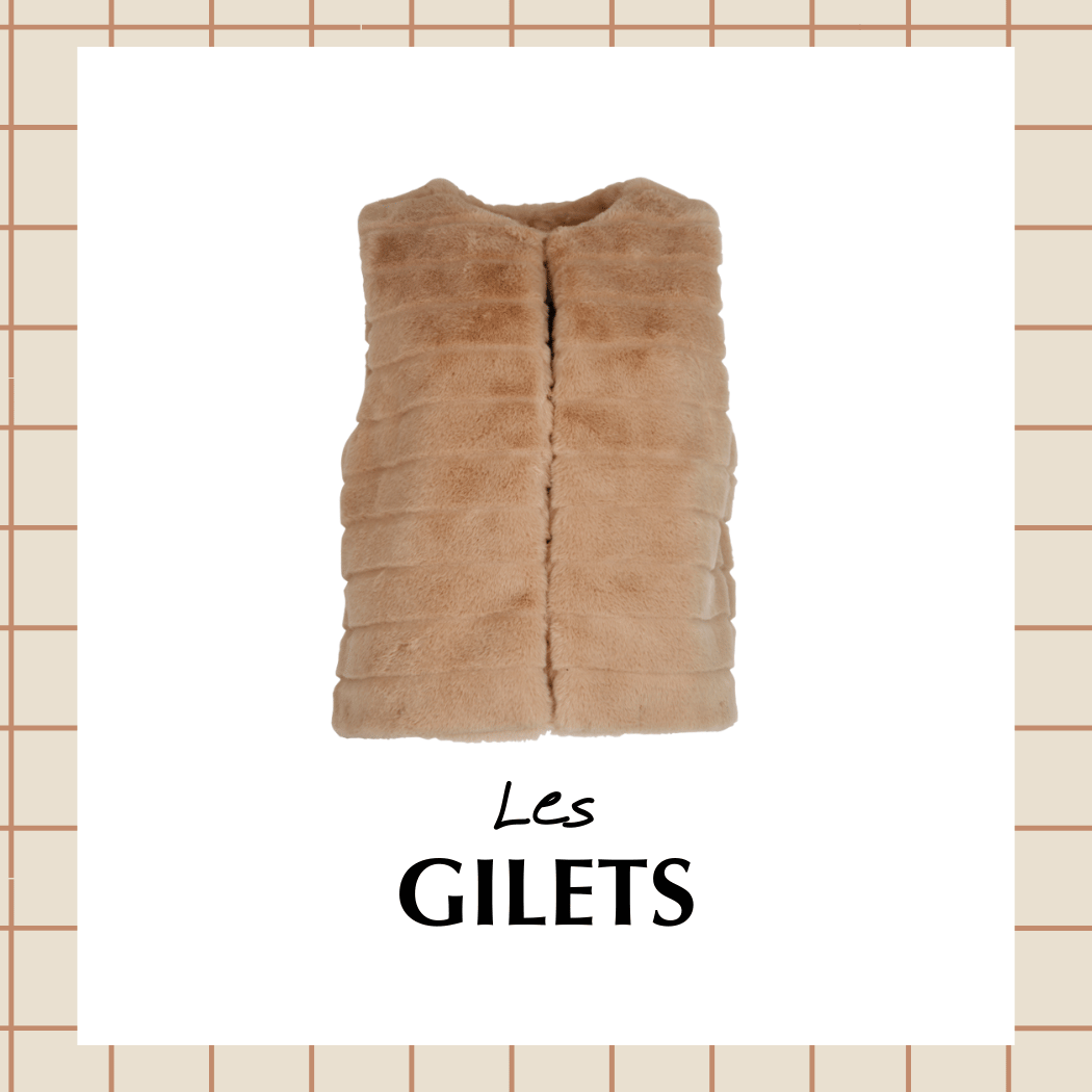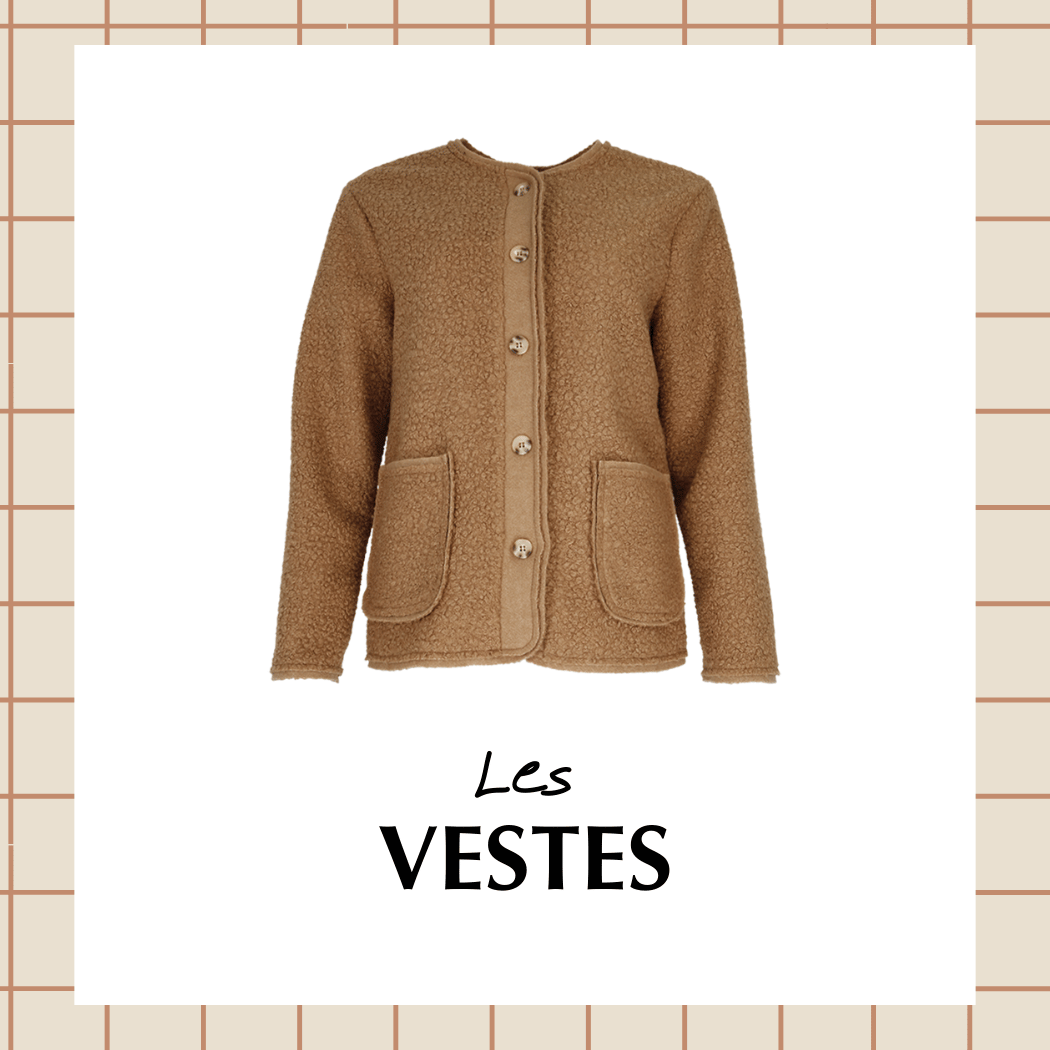 - Vestes & manteaux : blazers, vestes en jean, sans manches, en bouclette.
