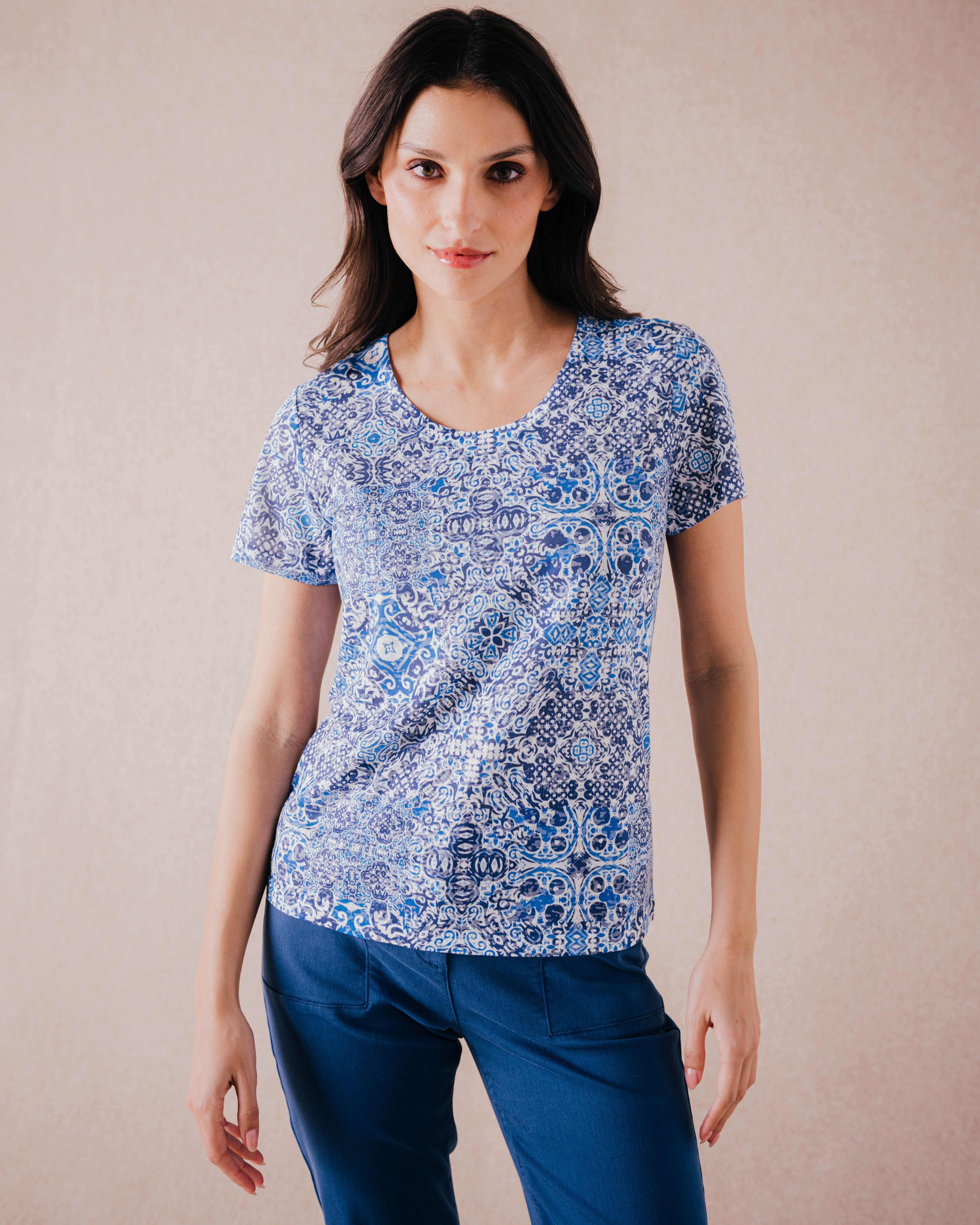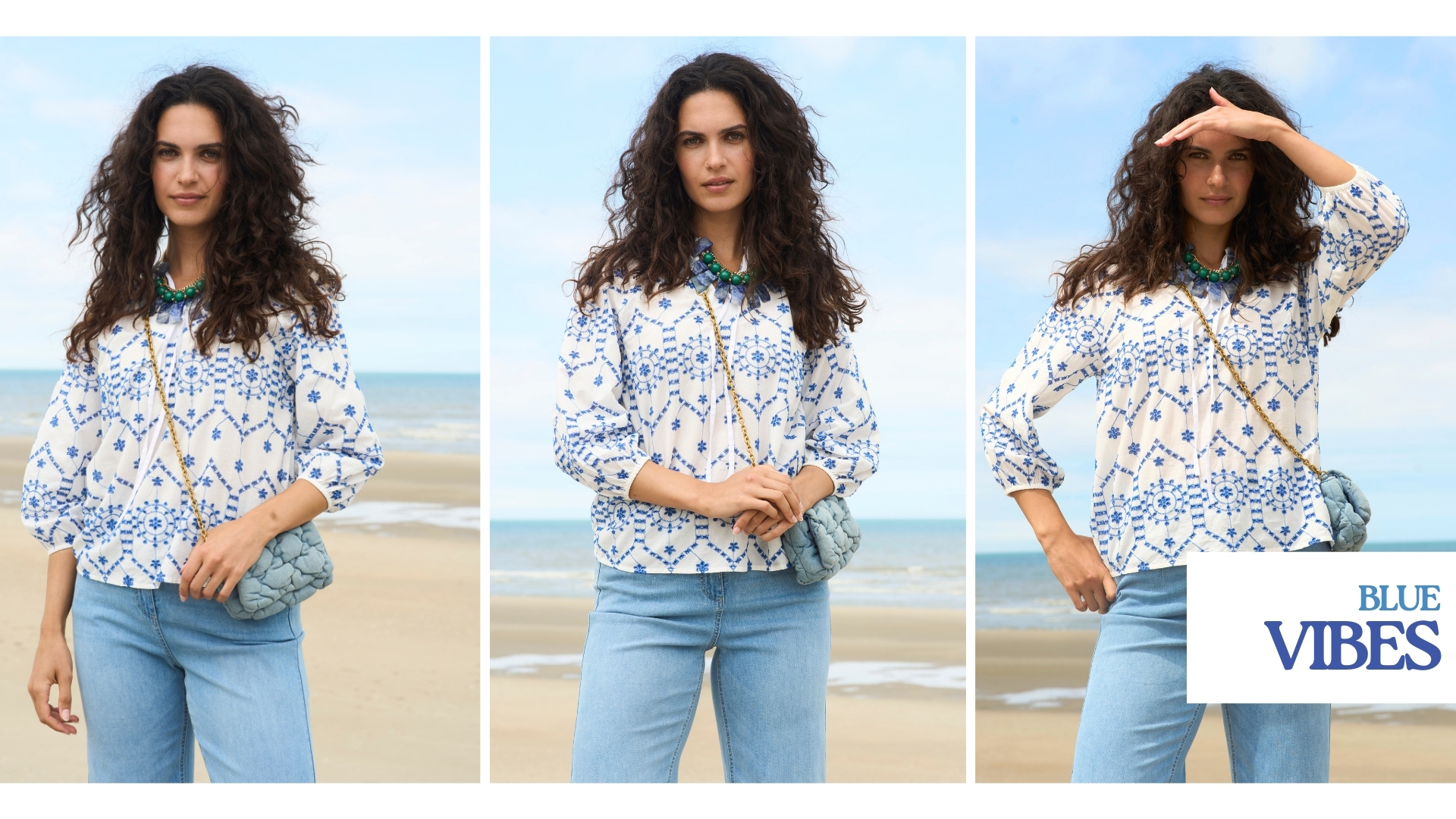 Les bleus profonds inspirés des céramiques et jardins exotiques habillent des silhouettent graphiques et élégantes.