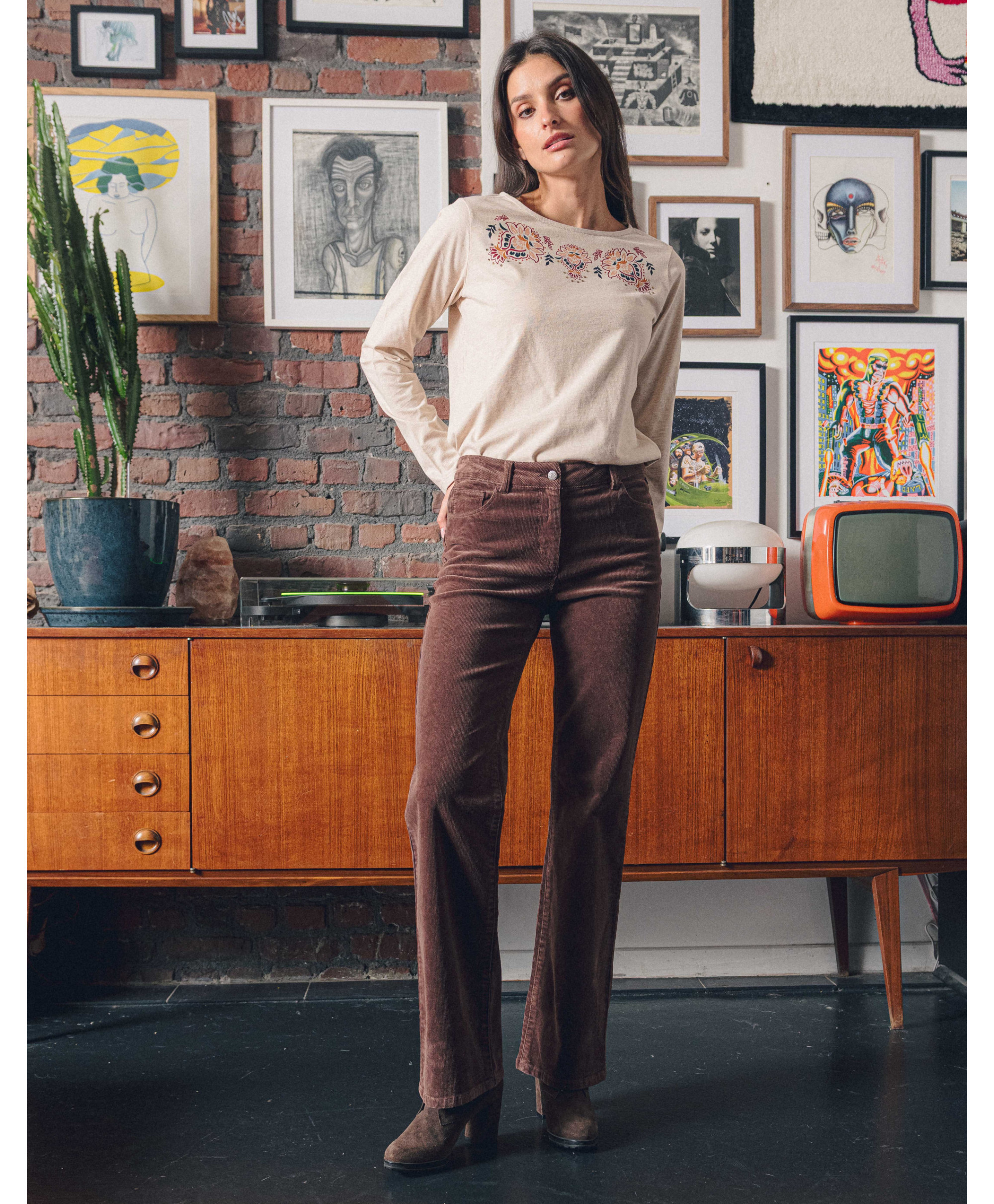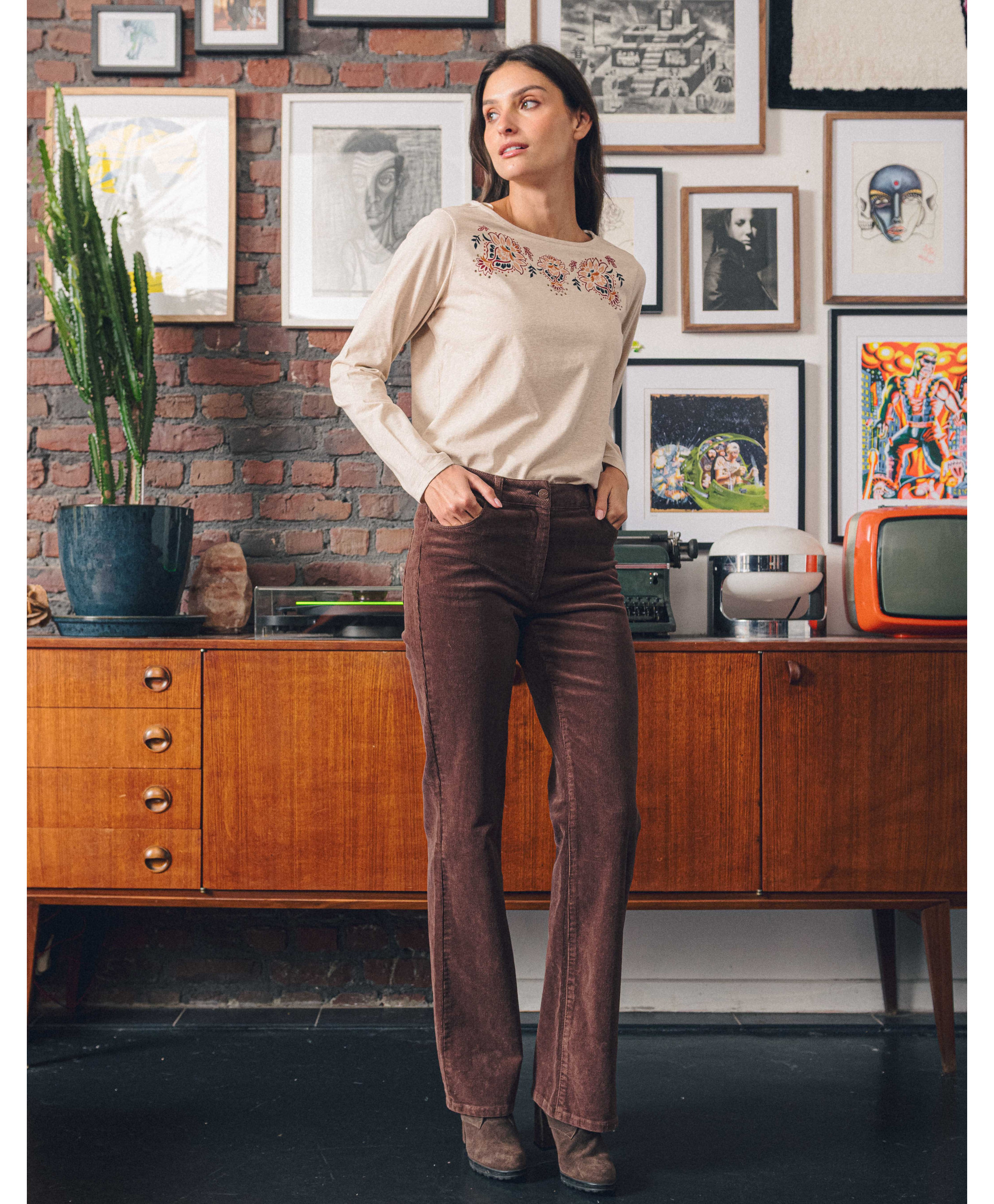 • Pantalon coupe flare en velours