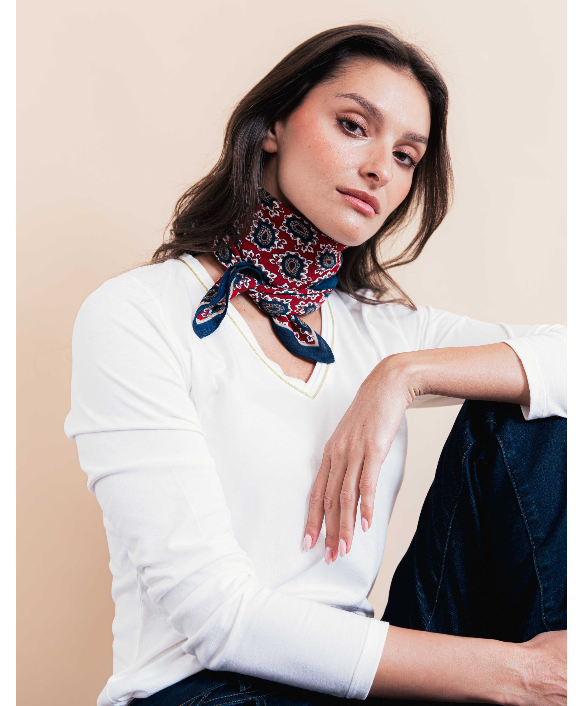 Le foulard, c'est l'accessoire à avoir tout le temps avec soi ! Vous apprécierez tout particulièrement ce modèle ravissant avec son motif coloré.