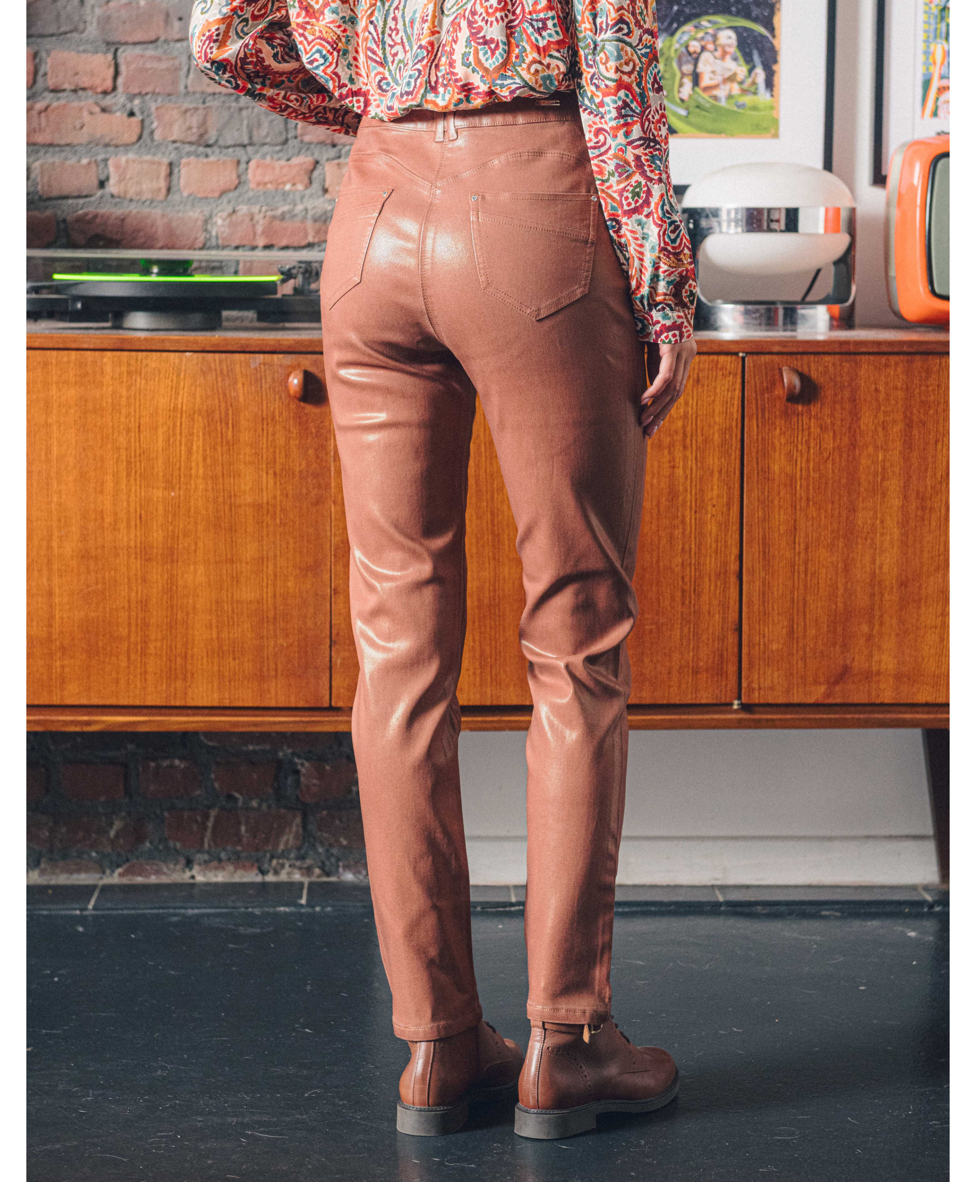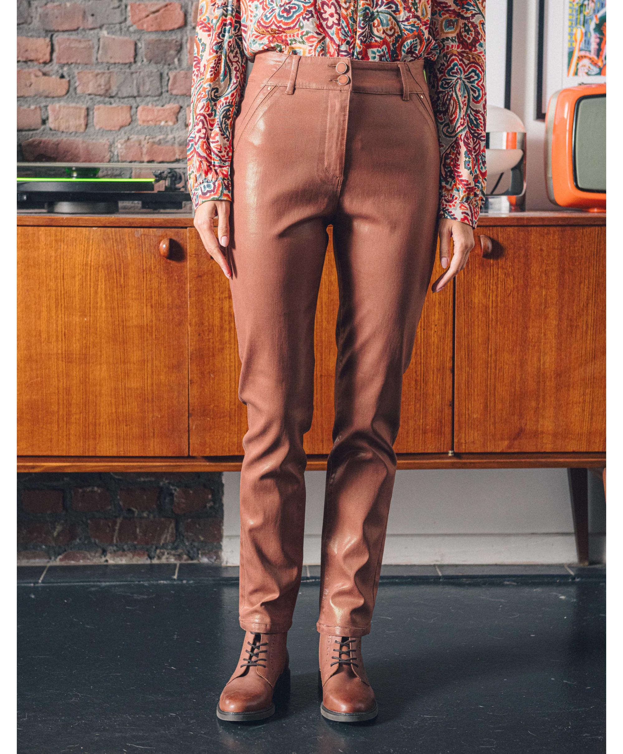 • Pantalon coupe slim enduit