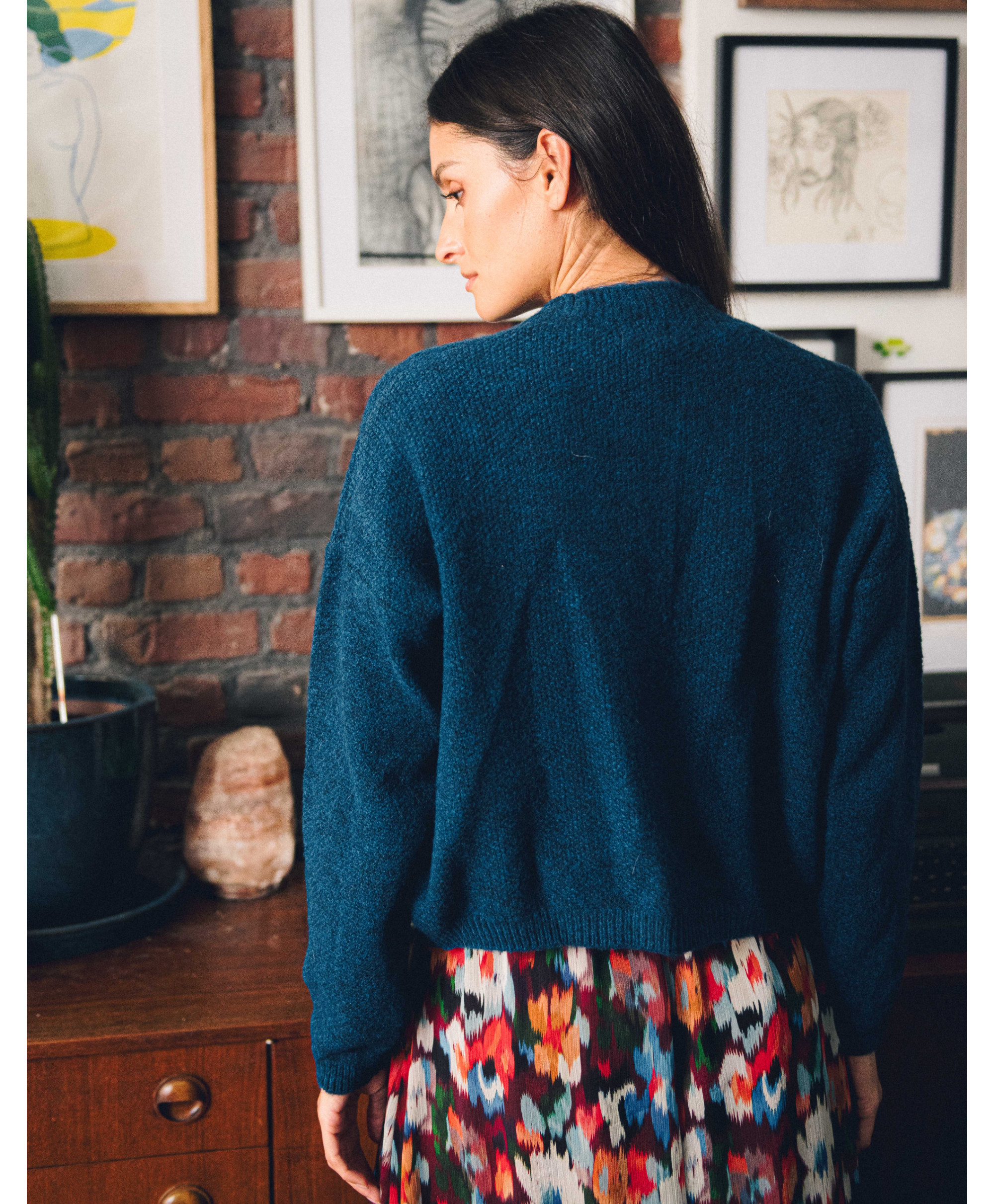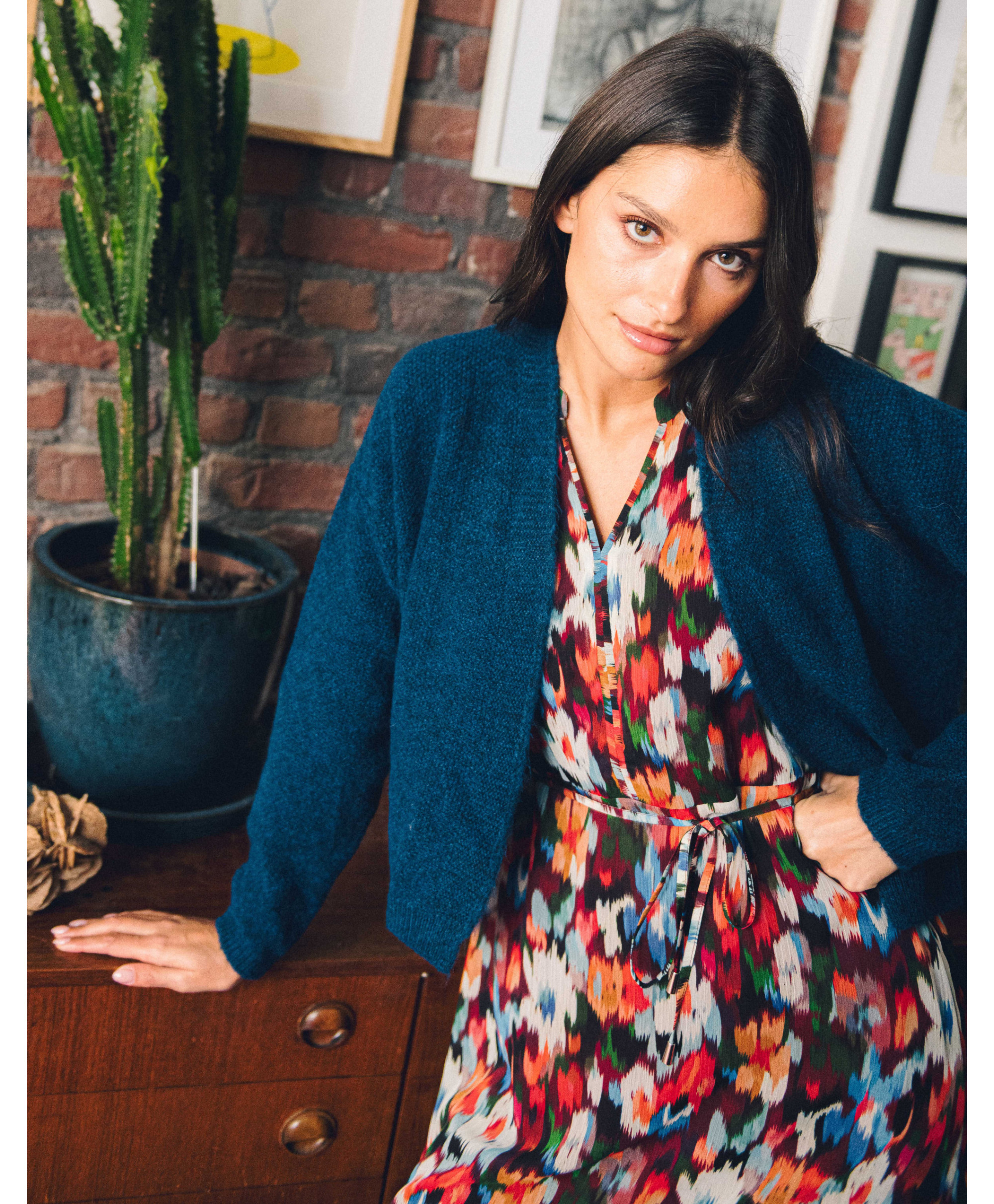 Notre mannequin mesure 174 cm et porte une taille 01.