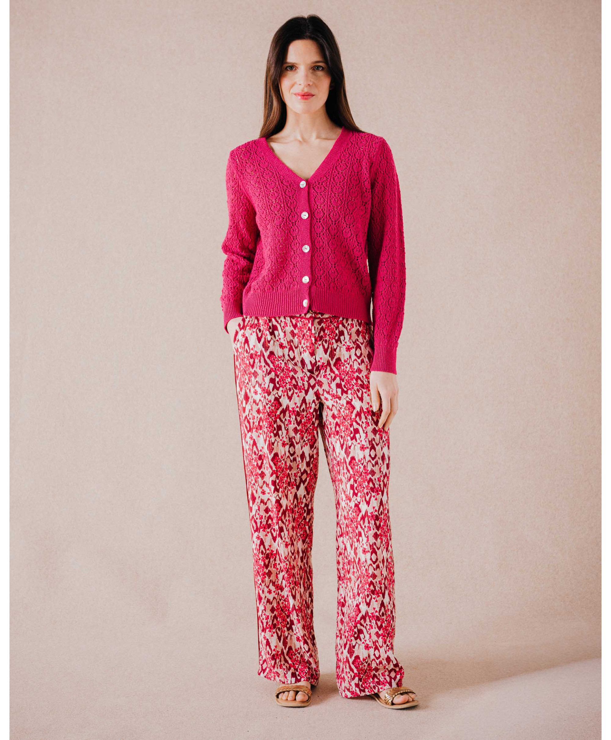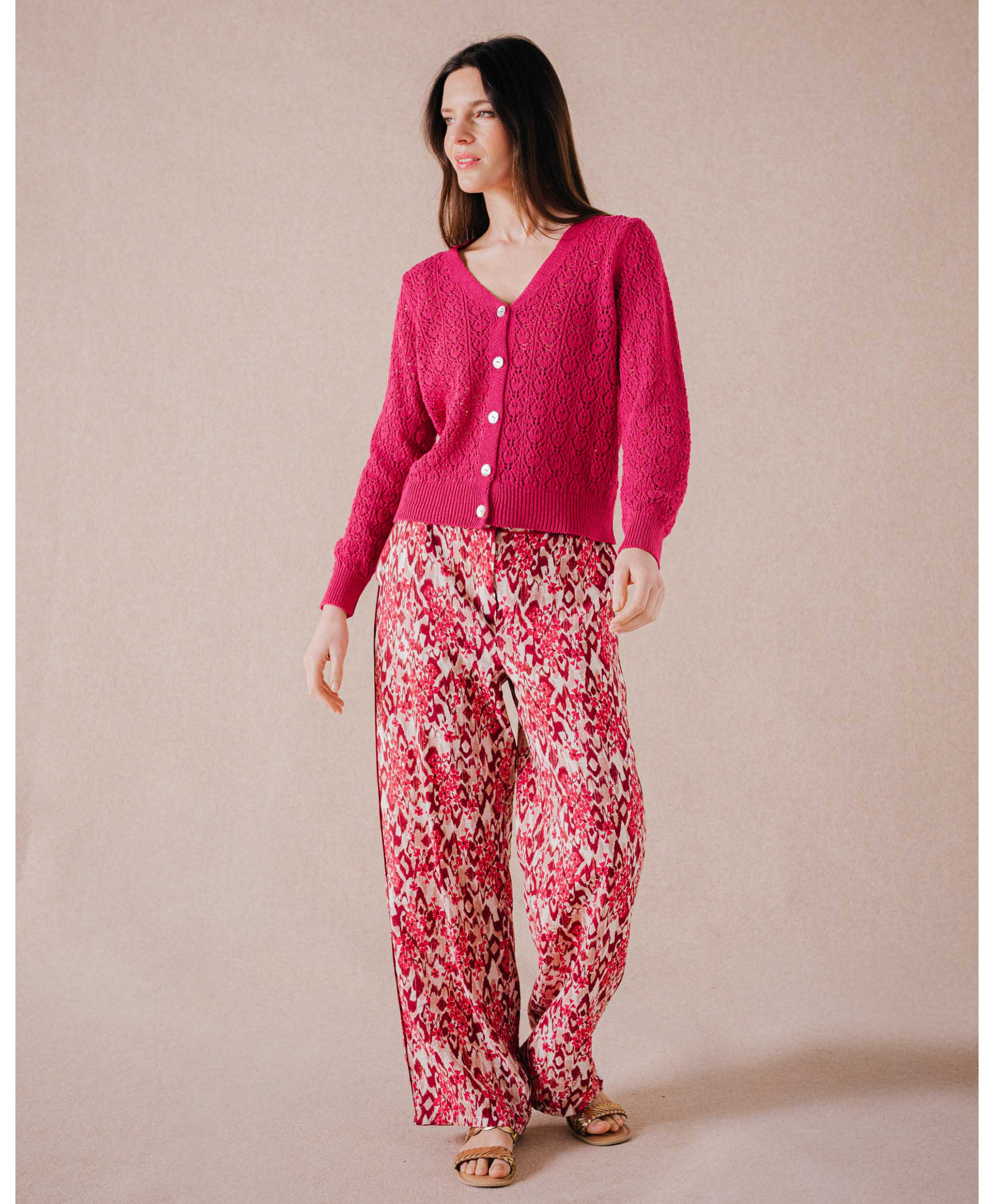 On aime ce gilet confectionné dans une maille ajourée délicate. Parfait sur une jupe. Une pièce essentielle du dressing.