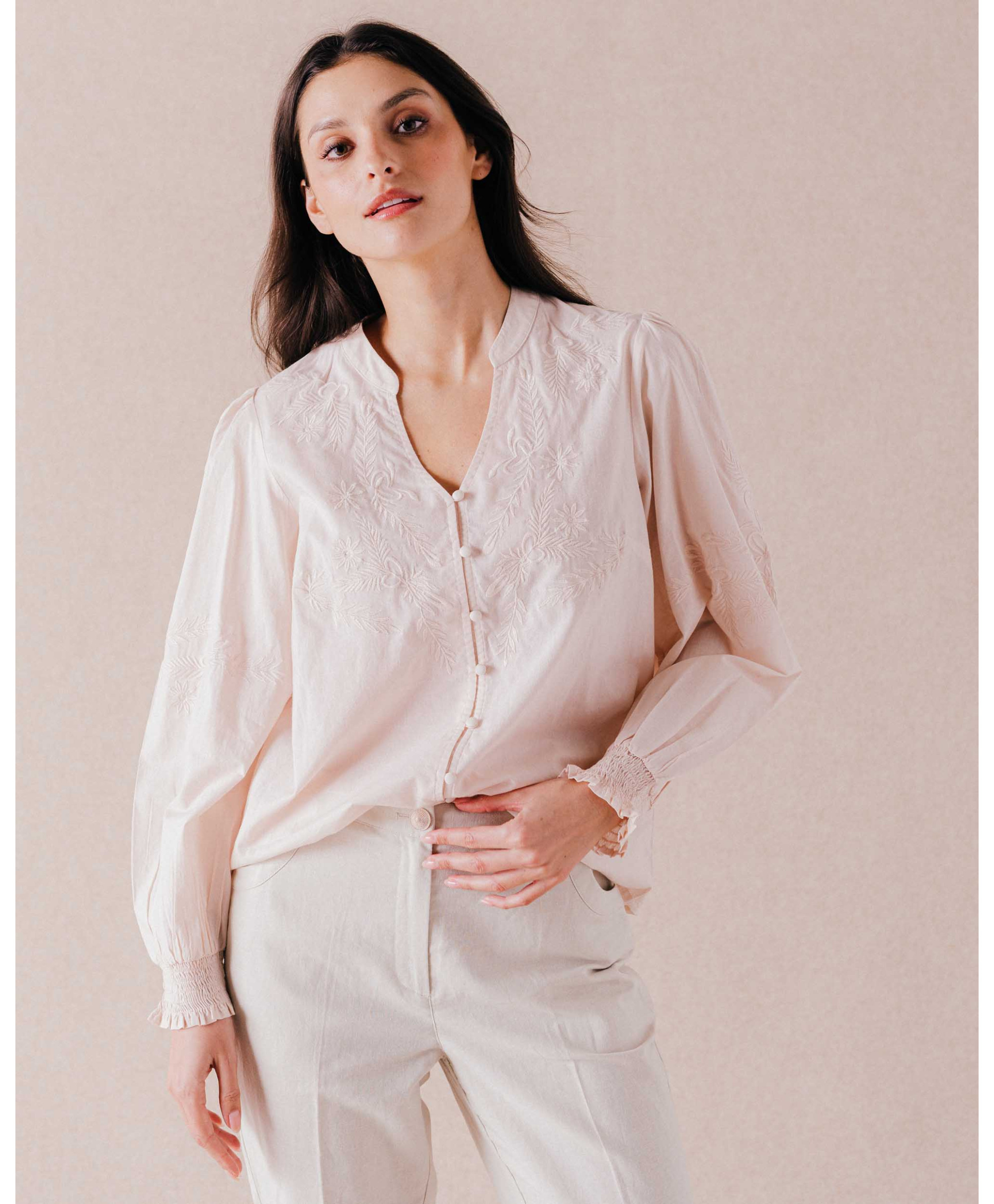 Adoptez notre blouse unie en broderie anglaise fantaisie. Une pièce féminine à ajouter à votre dressing et qui accompagnera vos looks en toute circonstance.