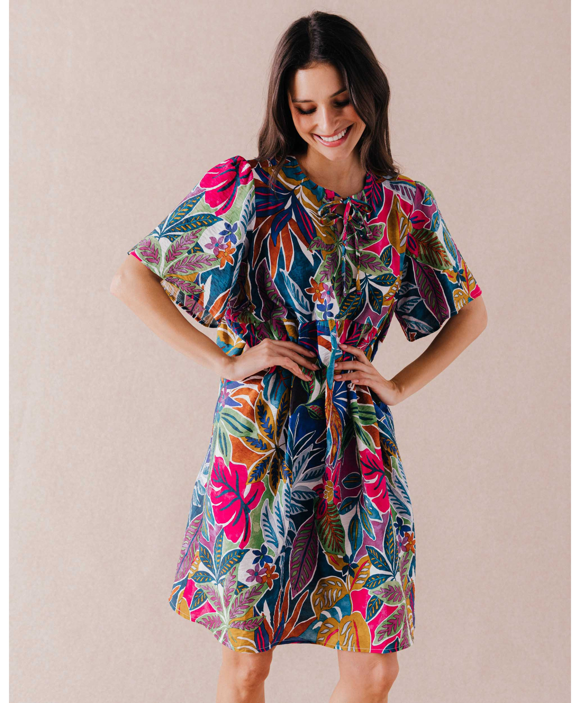 Vous allez craquer pour une robe courte imprimée. Terriblement tendance, elle arbore une coupe fluide et tendance et de jolis détails. Elle est très agréable à porter